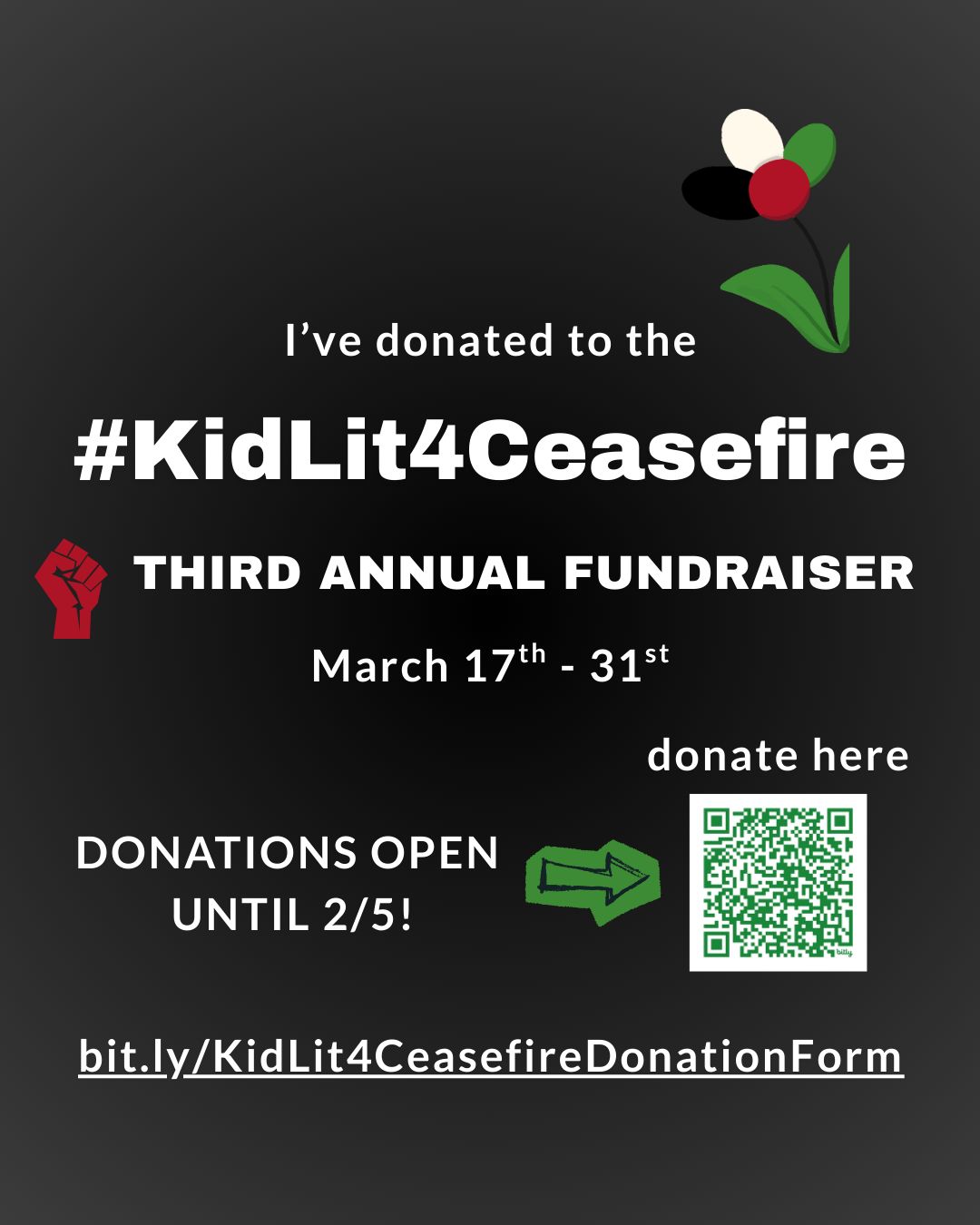 I also donated a query critique to #KidLit4Ceasefire’s next fundraiser in March to raise funds for families in Gaza (hopefully I’ll have physical copies to donate soon). Please consider donating an item or service here if you are able to. The form will close on Thursday, February 5th.