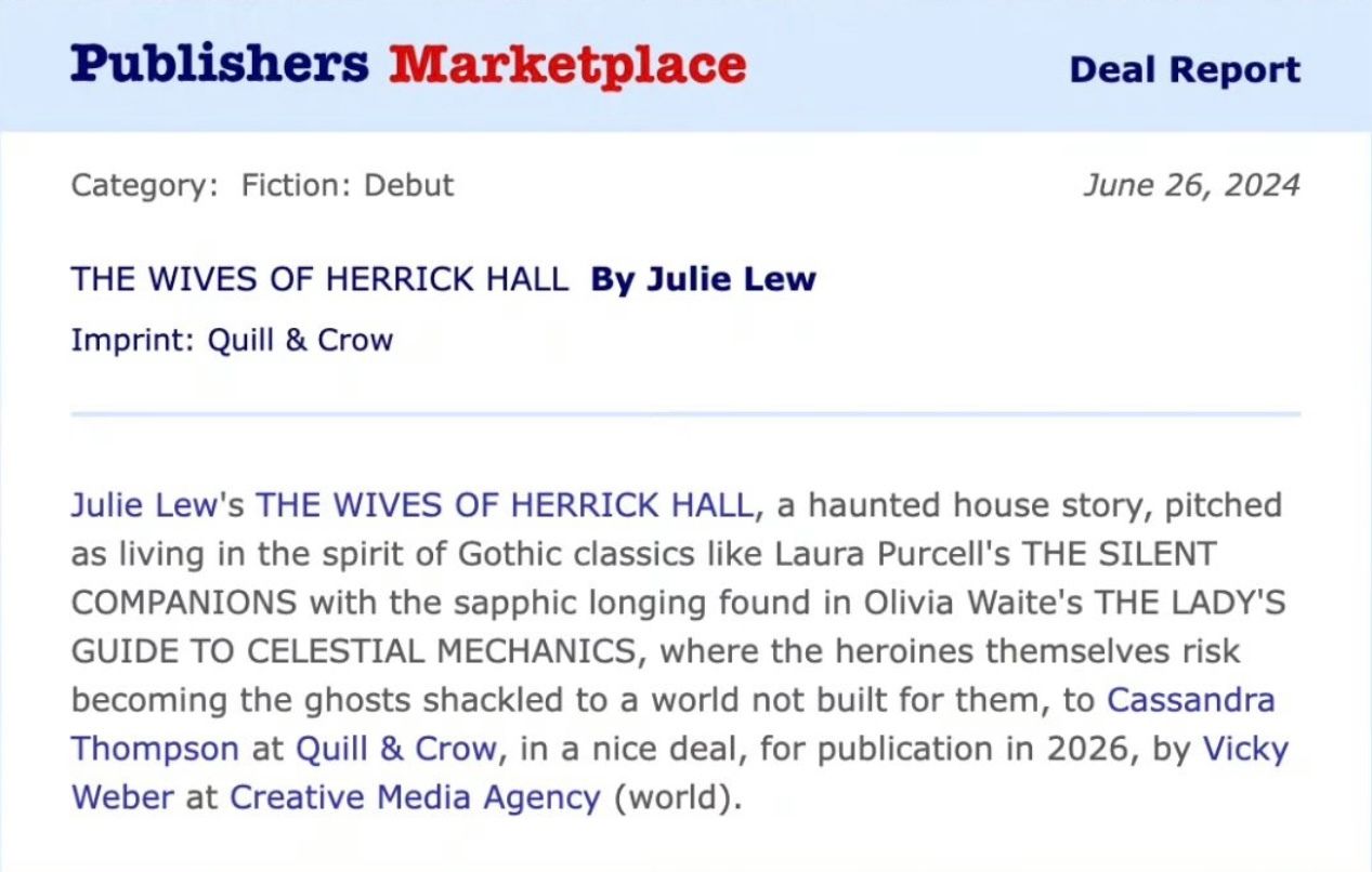 As you can see, it’s queer! It’s gothic! There are ghosts! And there is a lot of sapphic yearning between two ladies trapped in a haunted house together. I don’t want to get in trouble with my publisher, but as soon as I can tell you more, I’ll be in your inbox right away.