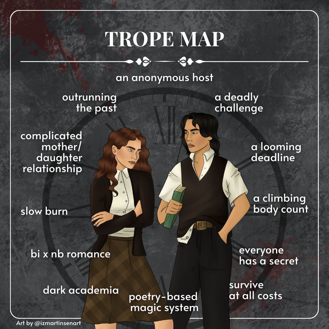When Bronte’s mother vanishes into thin air, the only clue she leaves behind is an invitation to a poets’ spell-writing retreat at an elite school on a remote island. Bronte assumes her mother’s identity to infiltrate it, hoping to find more clues, but upon arrival, she and a group of seven poets find the school abandoned. Their anonymous host gives them the first line of a poem and issues a challenge: finish the verse before the week’s end, and they’ll make it off the island alive. There’s just one problem—Bronte doesn’t possess poetry magic. With escape impossible, the deadline looming, and her mother still missing, Bronte races to unmask their host and their sinister plans before she’s exposed…or worse: the next victim.